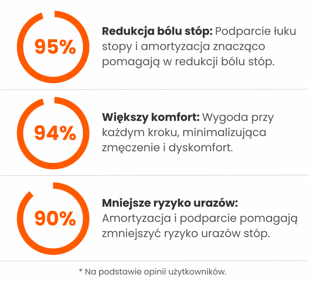 Nasze wkładki masujące dopasowują się do stopy, amortyzują każdy krok i dają natychmiastową ulgę.